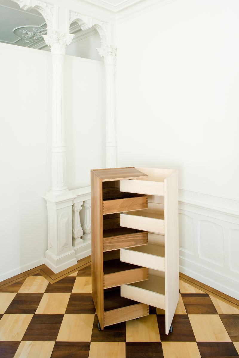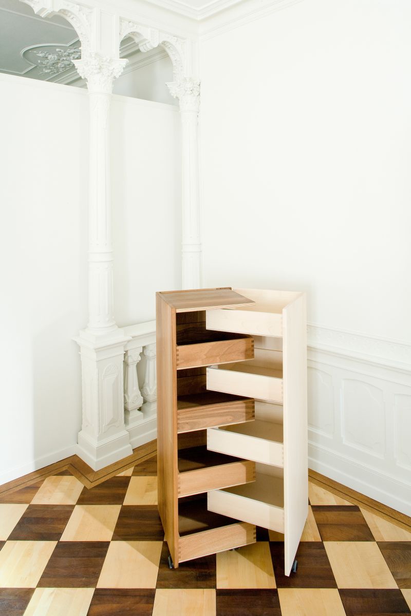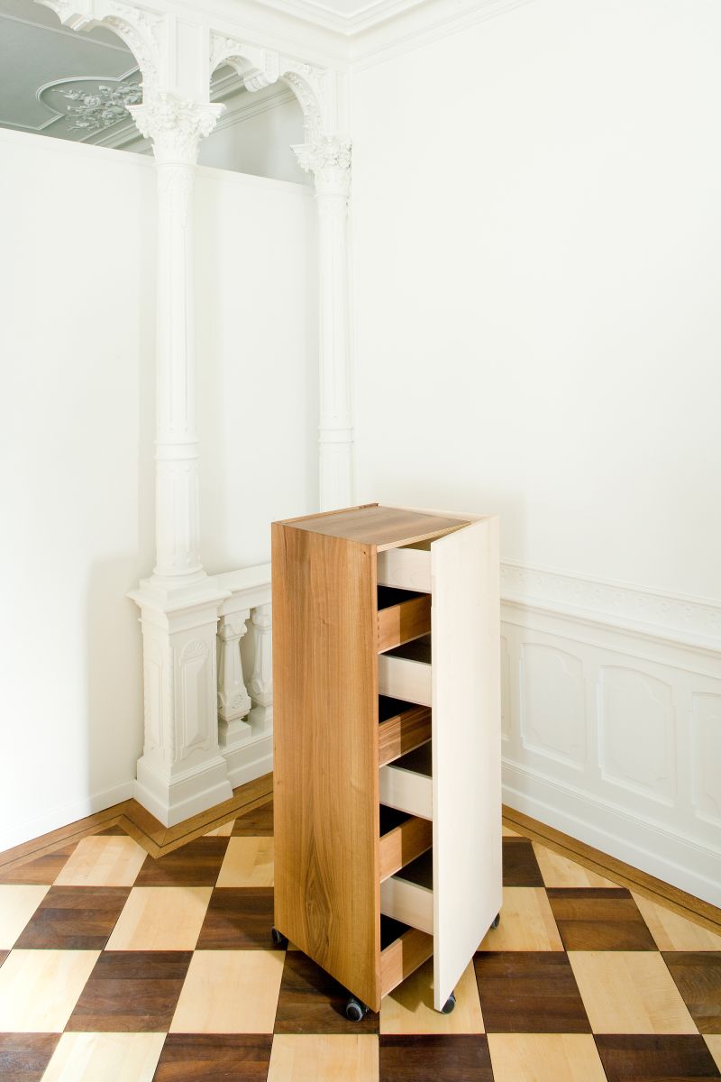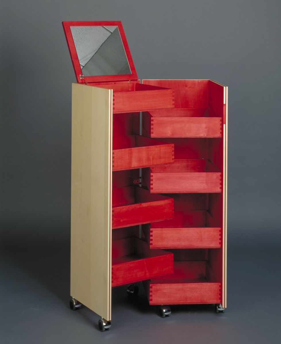 Ein Möbel zu schaffen, das sich bei äusserer Zurückhaltung auf seinen inneren Wert konzentriert. Das saftige rot überrascht beim Öffnen.
